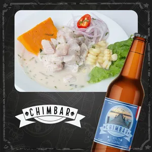 1 ceviche de pescado + 1 chicharron de pescado + 2 cervezas artesanales chimbar (red ale o lager)